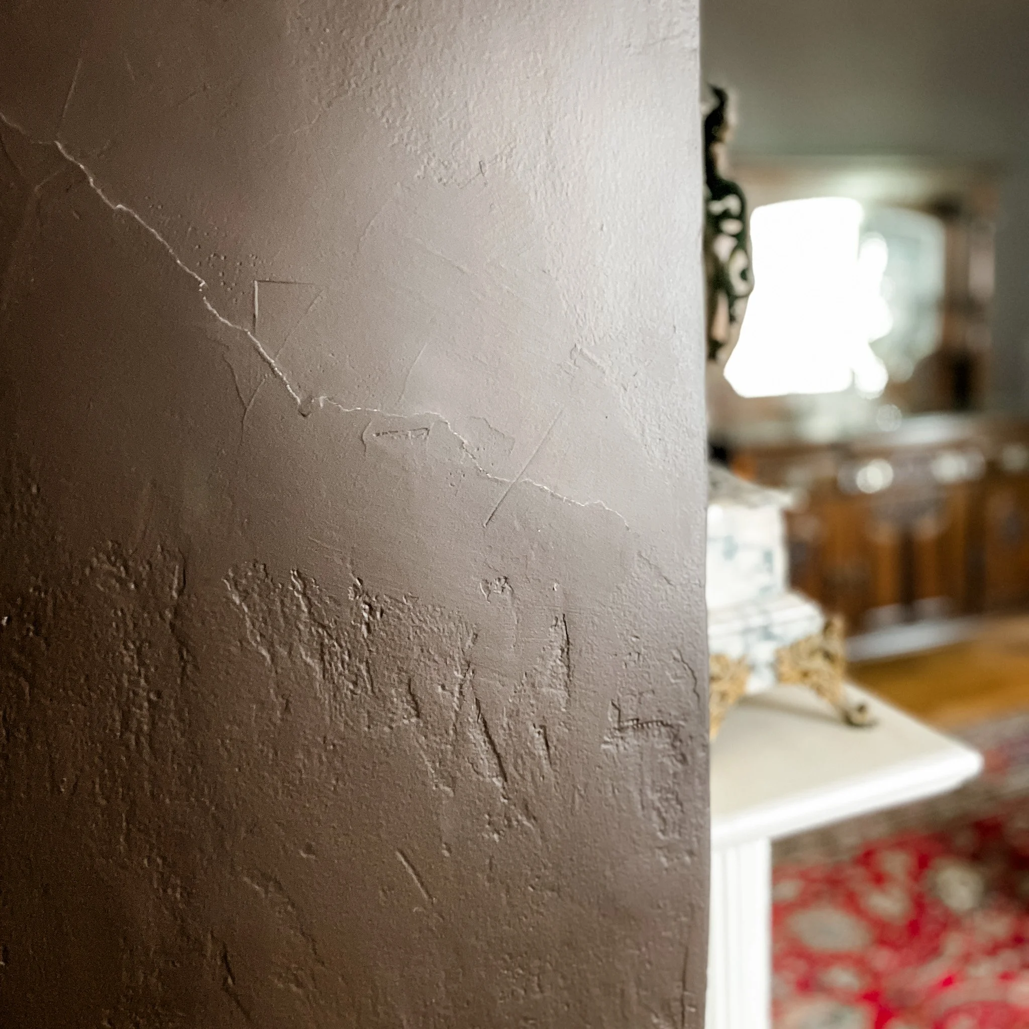 Cracks in the lumpy old plaster walls in the 1906 Turlington house in Mooresville, NC.